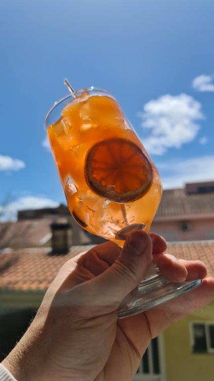 LAVURI® APEROL SPRITZ Cocktailkerze mit „ICE“-Würfeln, Orangenfrischduft und GEL Wachs für realistisches Aussehen