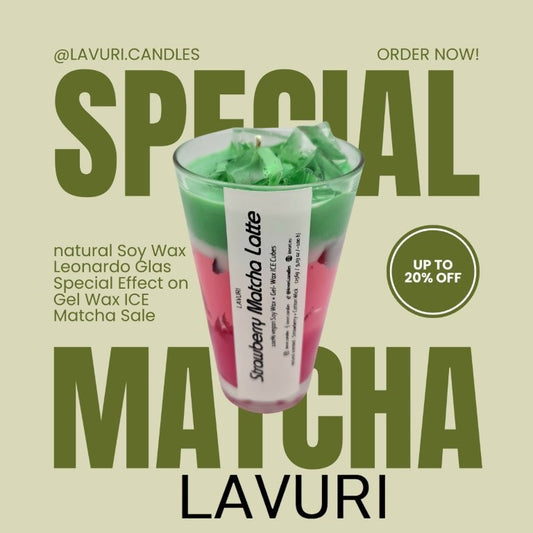 LAVURI® Strawberry Matcha Latte aus Soja Wachs Duftkerze vegan mit Gel- Wachs Eiswürfeln, handmade