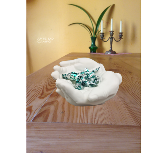 LAVURI® Deko Hands Schmuck- Deko- Skulptur- Kerzensand Bonbon- Schale weiß + Korkschutz