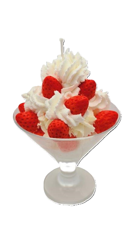LAVURI® Frambolese Erdbeerbecher Duft- Kerze mit Schlagsahne und Früchten als Topping in einem Martini- Glas (wieder verwendbar) – eine Gourmet-Dessertkerze aus 100 % Sojawachs.