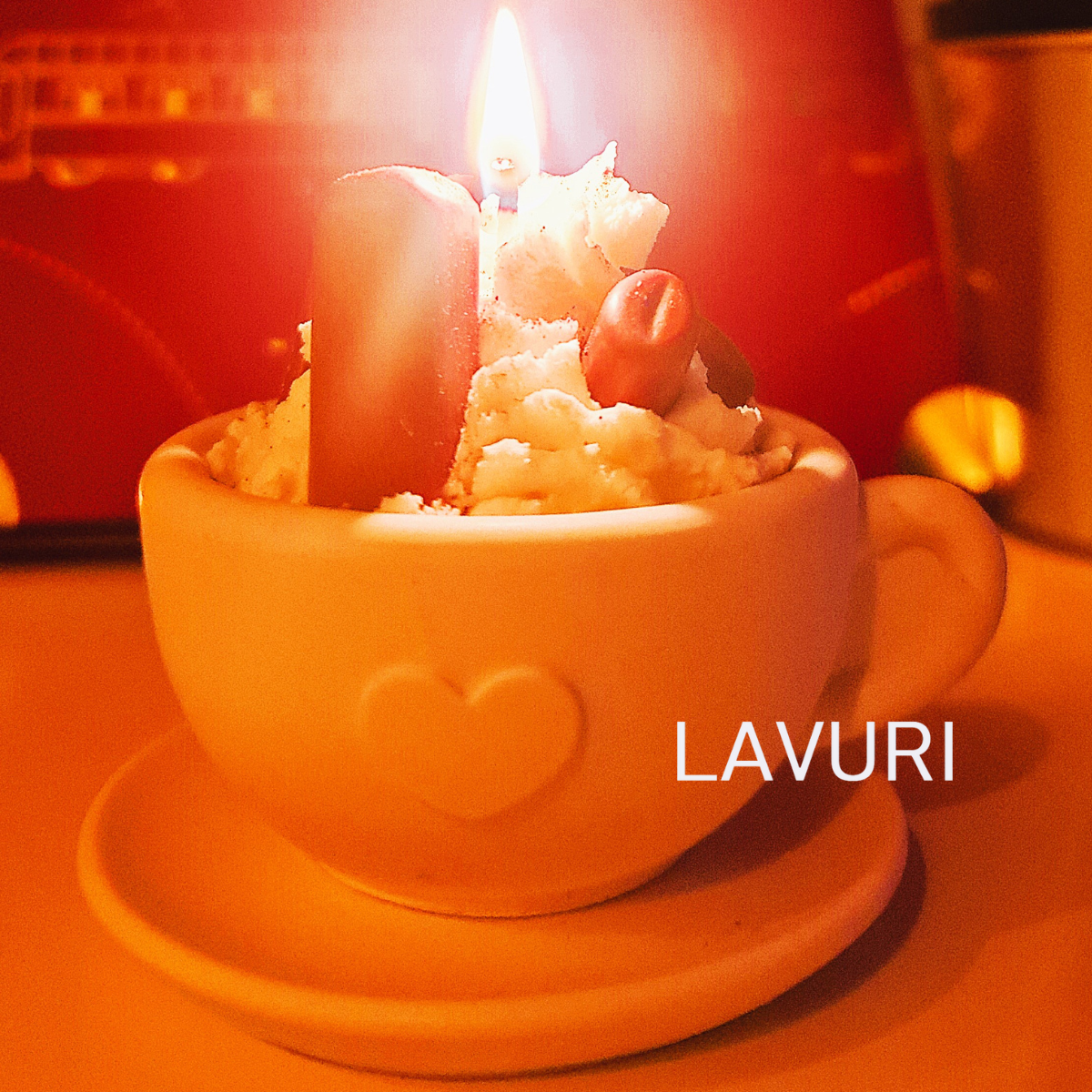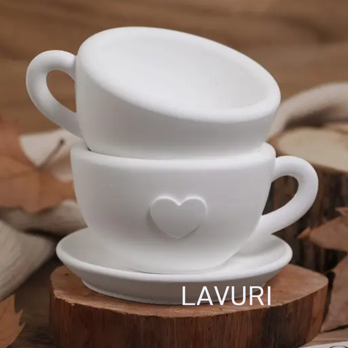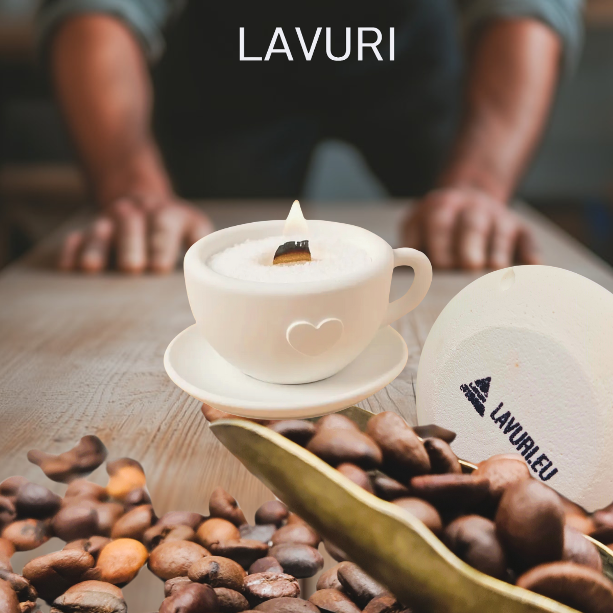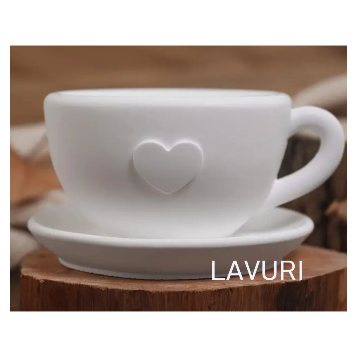 LAVURI® Cappuccino Tasse mit separatem Teller für Wachskerzen, Kerzensand / Perlwachs, Trockenblumen, Dekoration und als Duftkerzen Varianten erhältlich