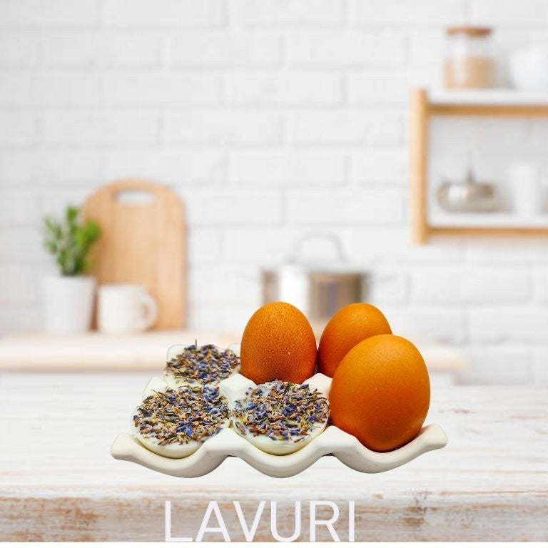 LAVURI® EGGY Tray 6er EIER Schale Dekoration Deco für Eier, Muffin, Wax- Melts, Aufbewahrung von Kosmetik Schwämmen, weiss