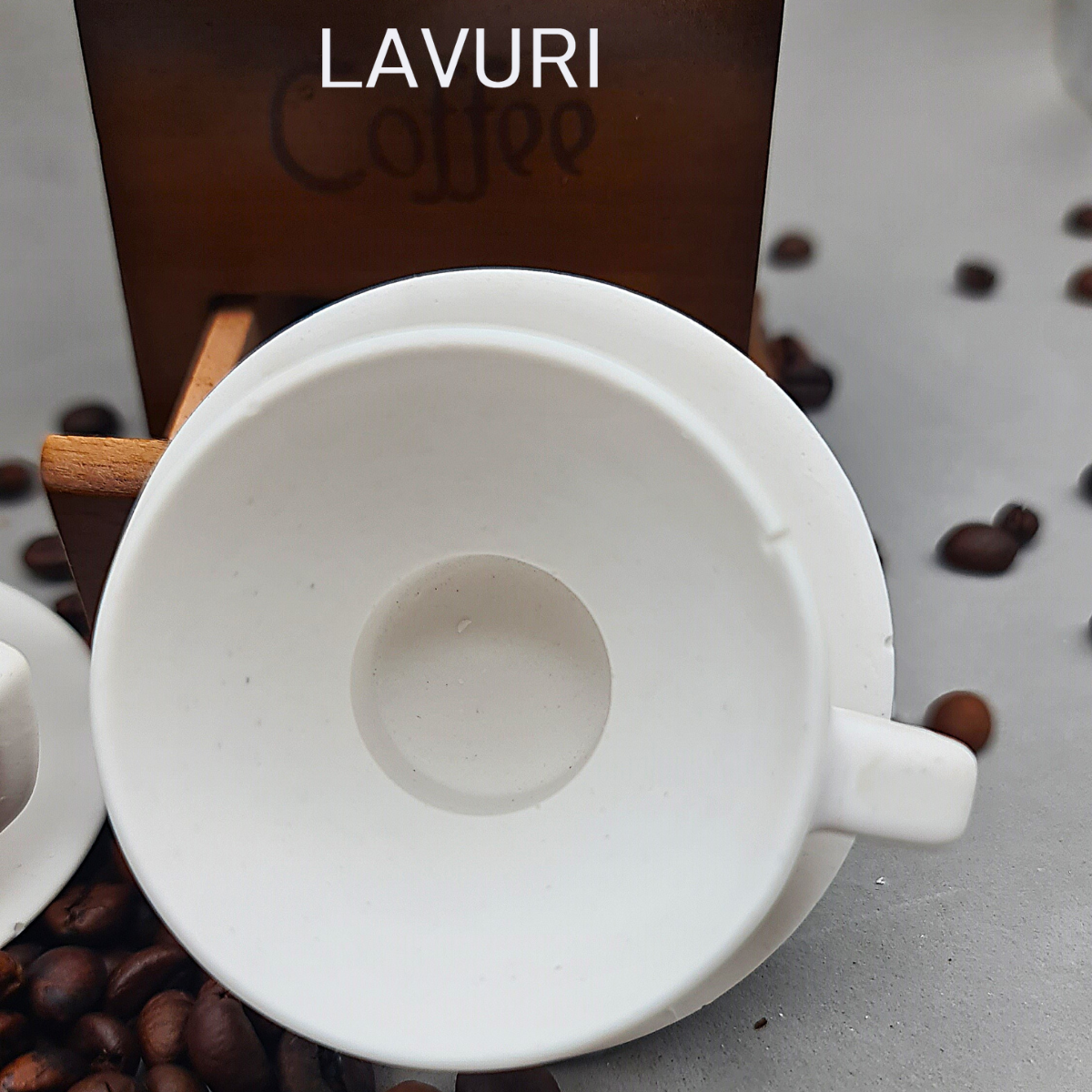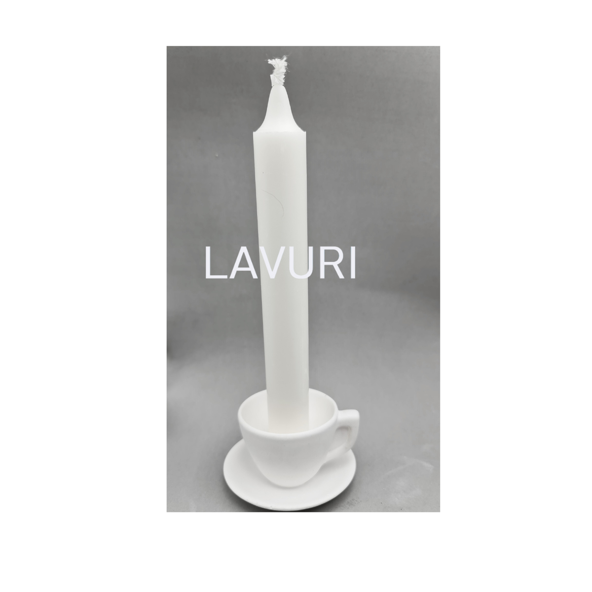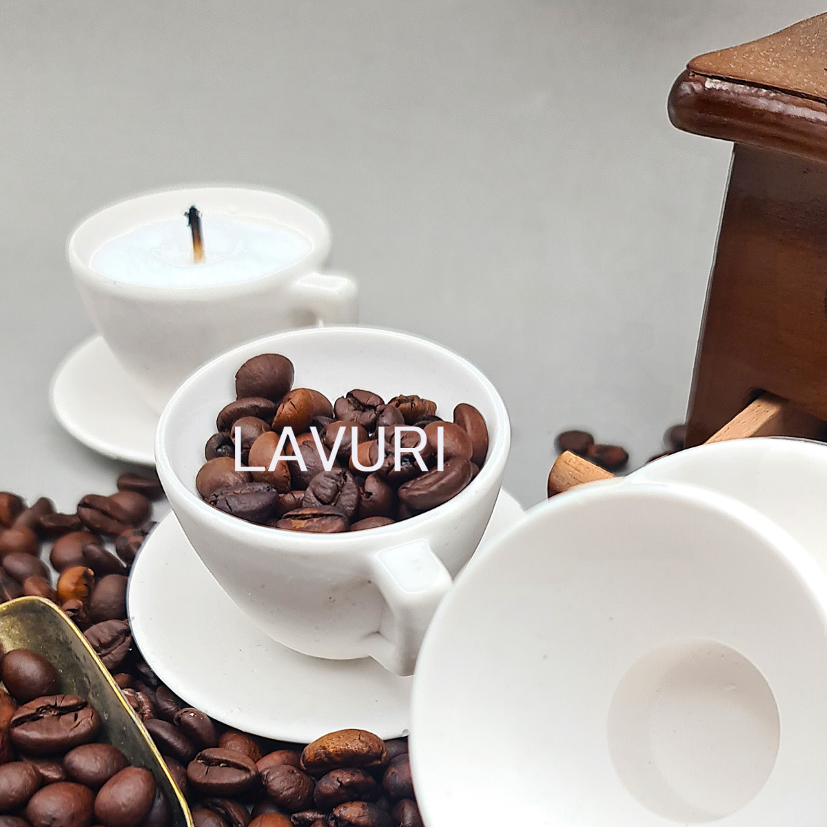 LAVURI® ESPRESSO Tasse auf festem Teller für Stabkerzen als Kerzenhalten, Wachskerzen, Kerzensand / Perlwachs, Trockenblumen, Dekoration und als Duftkerzen Varianten erhältlich