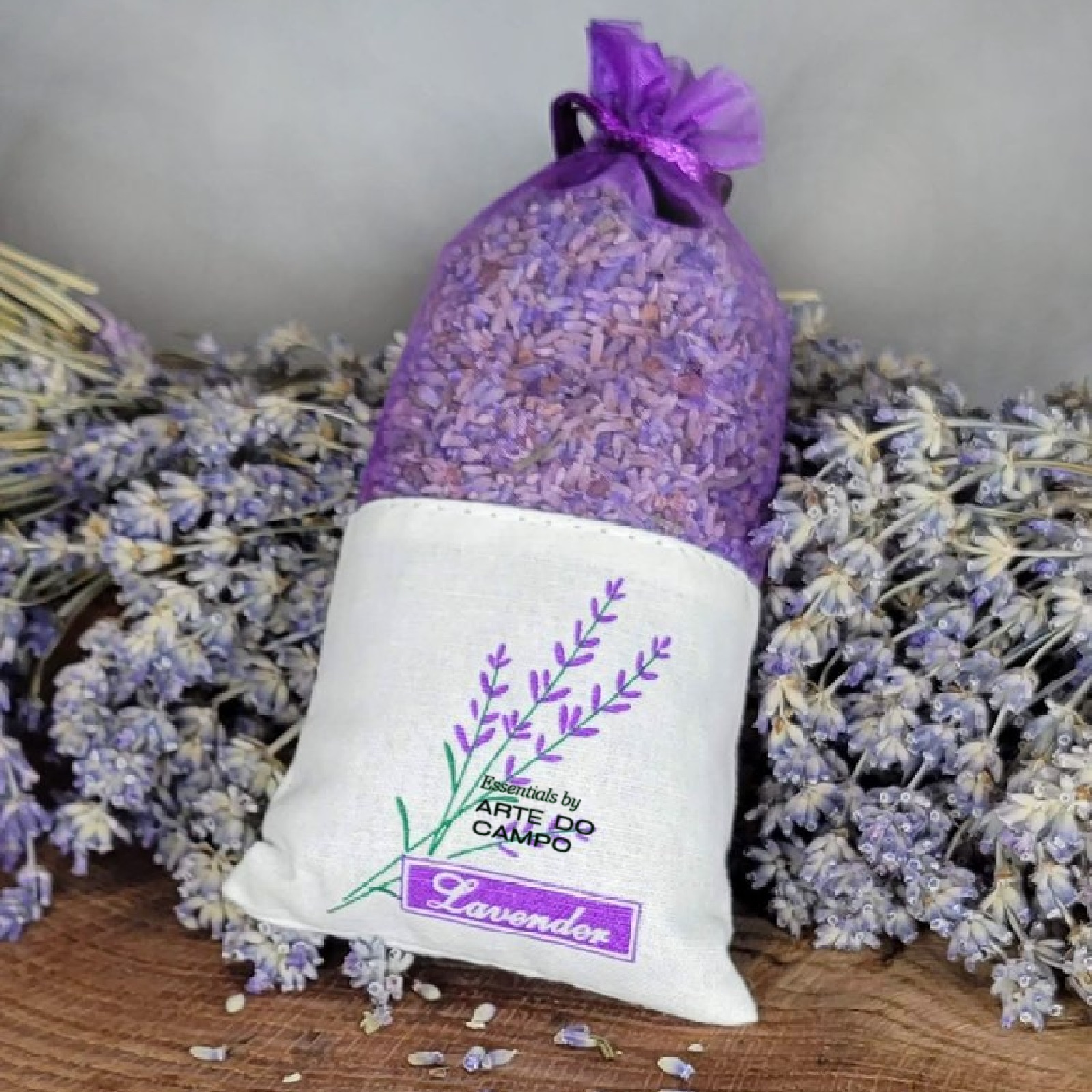 Wir verwenden naturreine, duftintensive Lavendelblüten, direkt aus unserem Garten, vom Feld aus der Region oder geliefert in luftdichter Verpackung von langjährigen Partnern aus Frankreich und der Türkei, diese füllen wir dann in feinen Organza- Sachet wodurch sich der Duft gleichmässig entfalten kann.