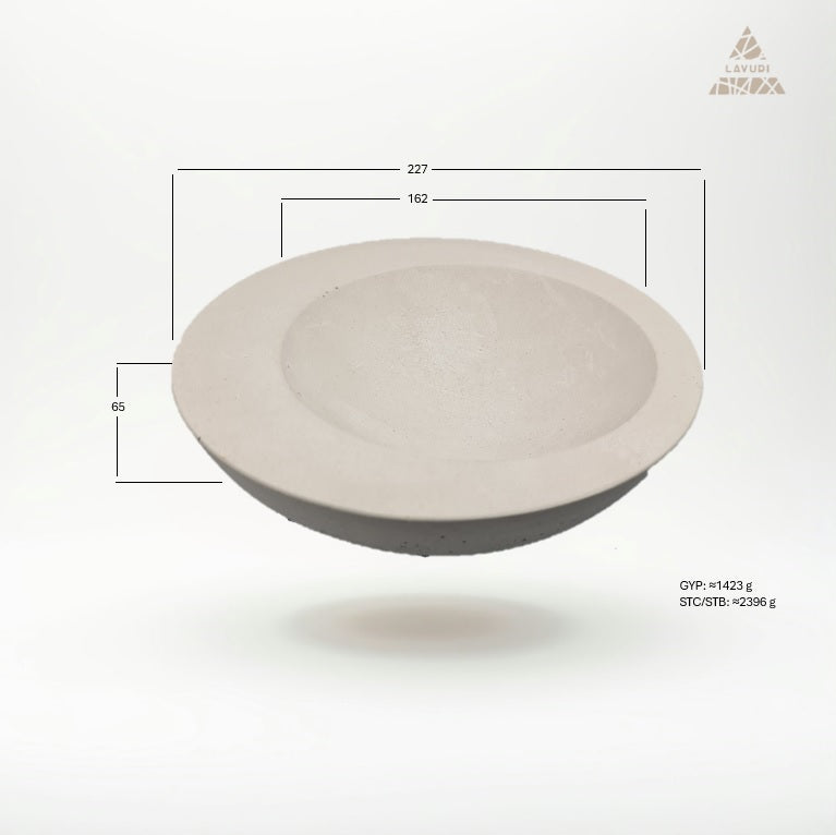 all LAVURI® Home Decor are made of 100% natural products, locally sourced in europe, contains Calcium Sulfate, gympsum, stewalin, cement, granulate, terra sulfate and water, all components with natural appearances at nature, just cleaned, reworked, selected and prepared for production of vegan and biological LAVURI® Home Decor items. The product can be recycled in natural inviroment as natural component