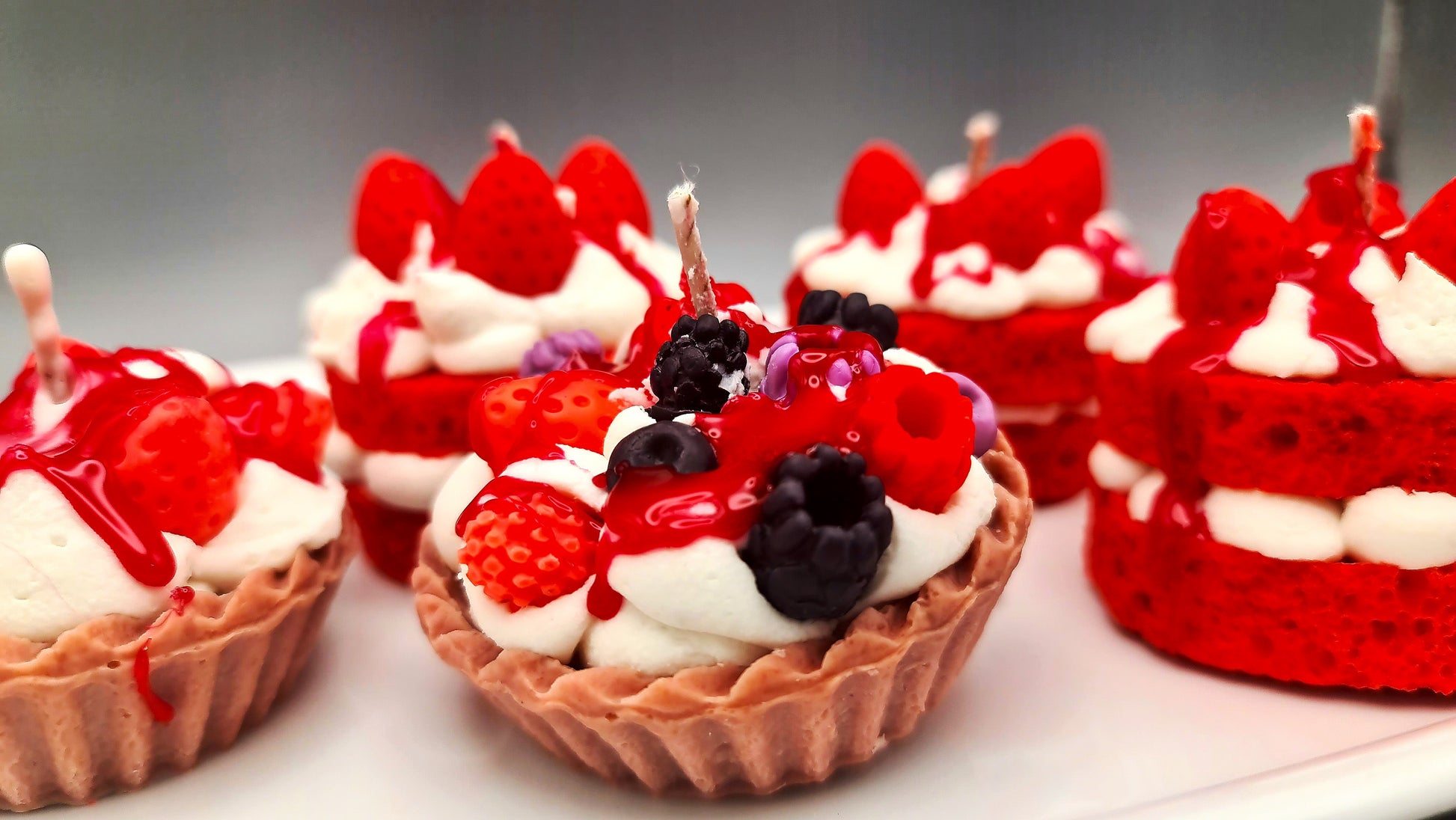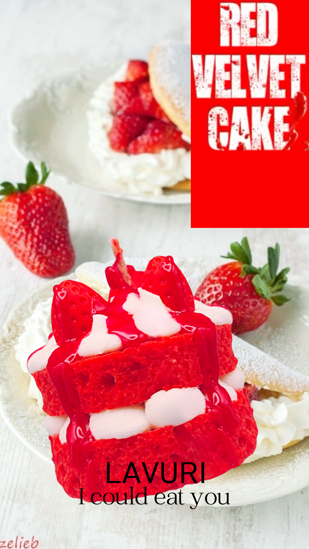 LAVURI® RED Velvet-Erdbeerkuchenkerze mit Fruchtbelag auf Schlagsahne und flauschigem Samtboden ist ein wahres Schmuckstück und eignet sich hervorragend als Hochzeits- und Geburtstagsgeschenk, als Tischdekoration zum Abendessen oder zum Nachmittagstee. Die 100 % handgefertigte, vegane Gourmetkerze mit natürlichem Sojawachs und Erdbeerduft ist ein atemberaubendes Unikat.